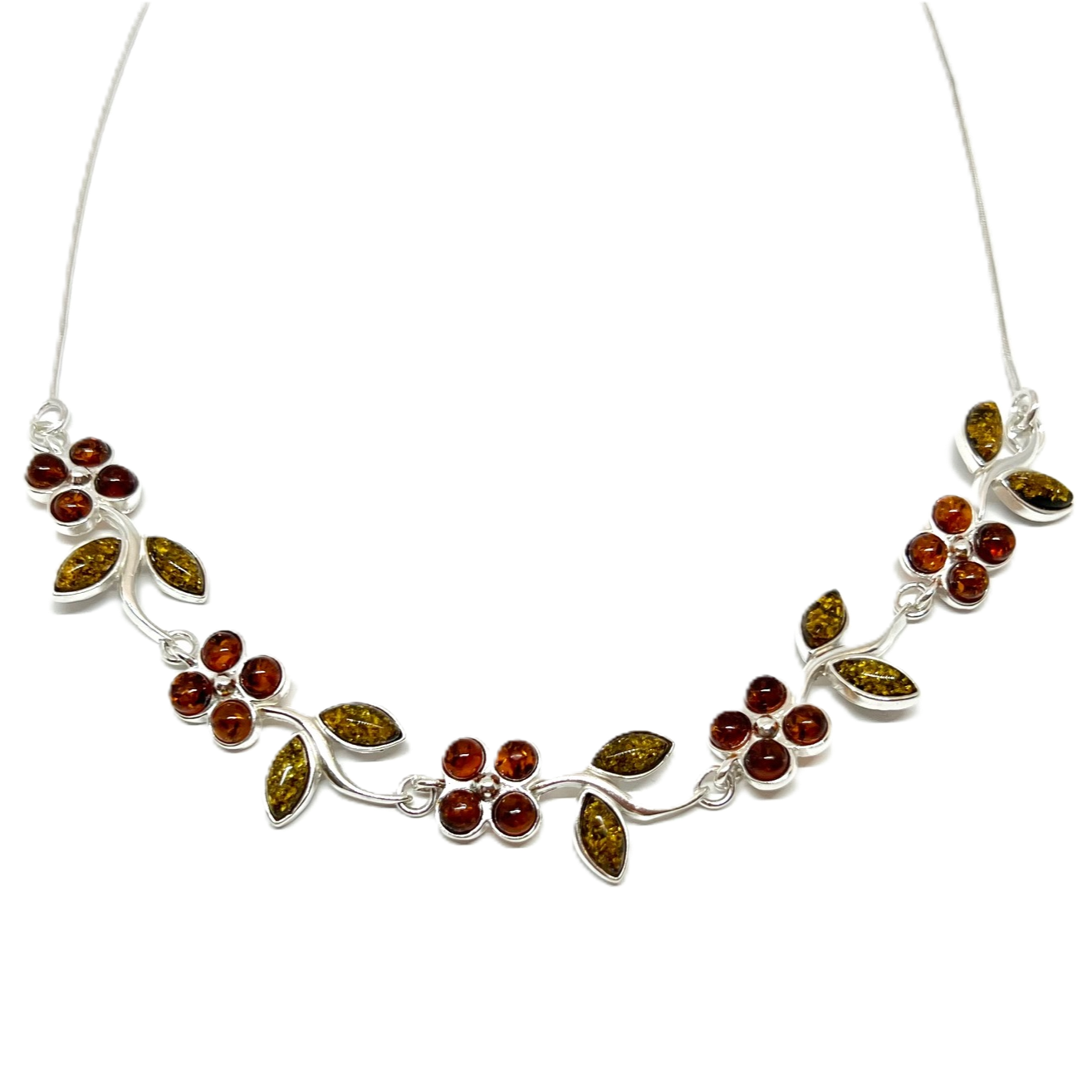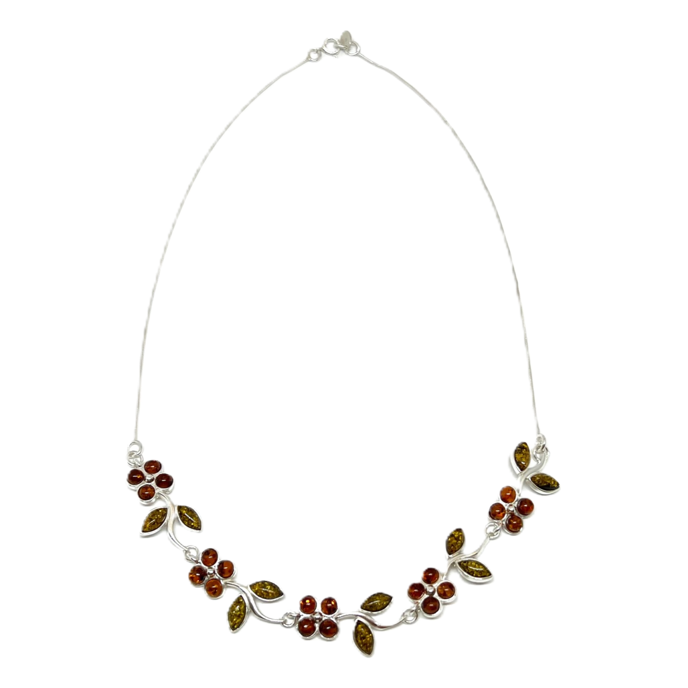 Smuk og elegant collie i sterlingsølv med cognac og grøn rav.
