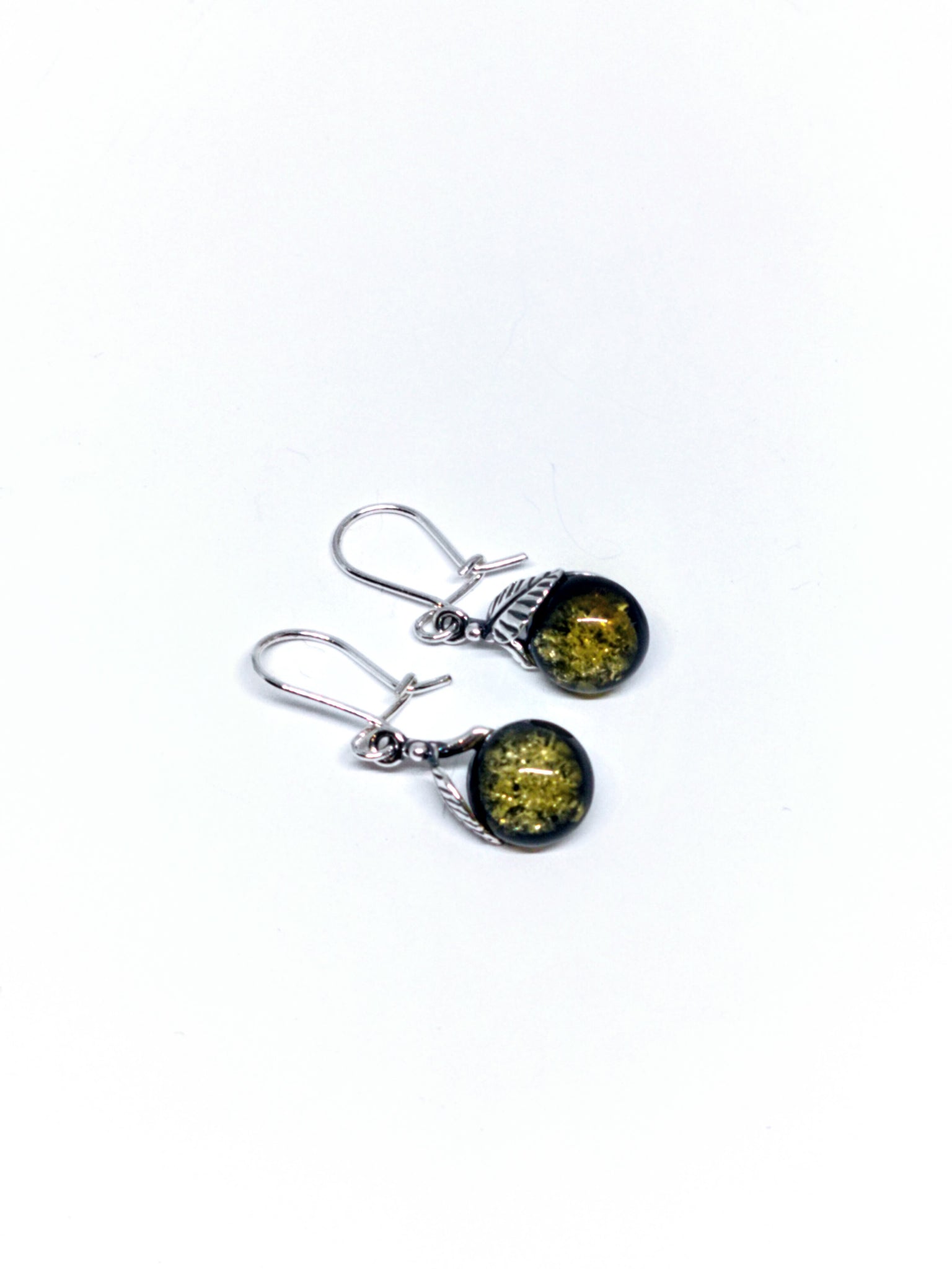 Dansk design sterlingsølv ørehænger med baltisk rav