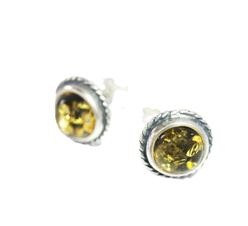 Rav ørestikker med grøn, mælke og cognac farvet rav (925)